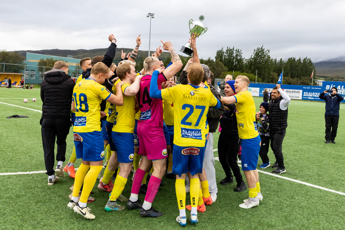 Hamrarnir urðu Utandeildarmeistarar og tryggðu sér upp í 5. deild eftir 9-1 sigur á Boltafélagi Norðfjarðar á laugardag. Knattspyrnufélag Breiðholts, KB, fylgir Hömrunum upp í 5. deild.