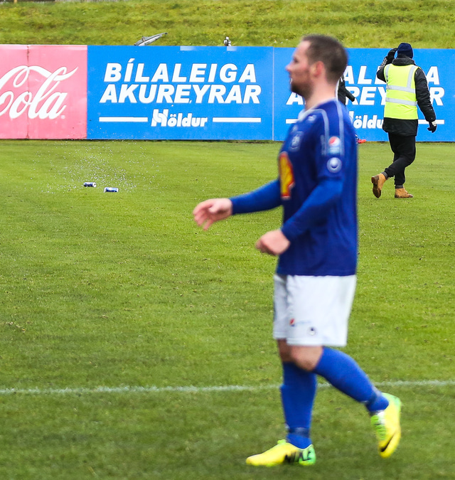 Áhorfendur Stjörnunnar hentu dósum inn á