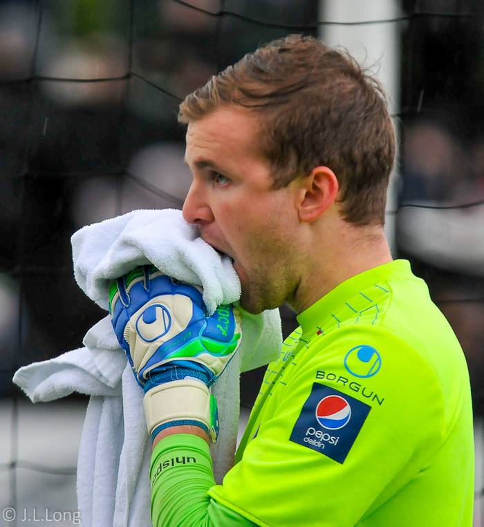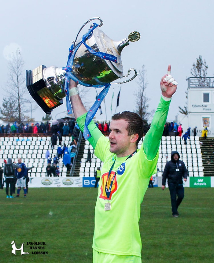 „Ég man ekki einu sinni eftir því þegar hann flautaði af. Þetta var orðið svo stressandi í lokin. Eftir að við skoruðum fengu þeir þrjár aukaspyrnur og tvær hornspyrnur. Þetta var hrikalega taugastrekkjandi. Þeir hentu öllum sínum mönnum inn á teig og það gat allt gerst. Maður var í hálfgerðu blackouti."