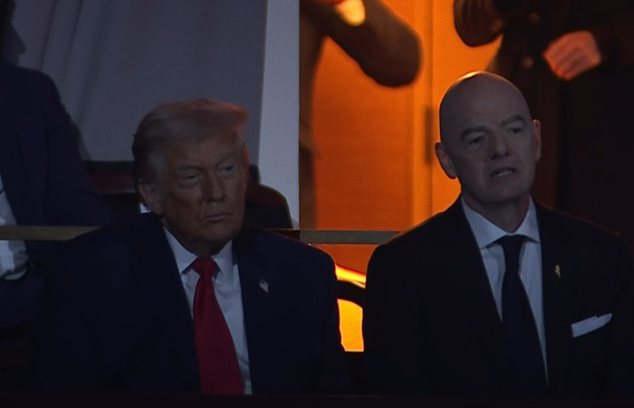 Trump og Infantino njóta skemmtiatriða.