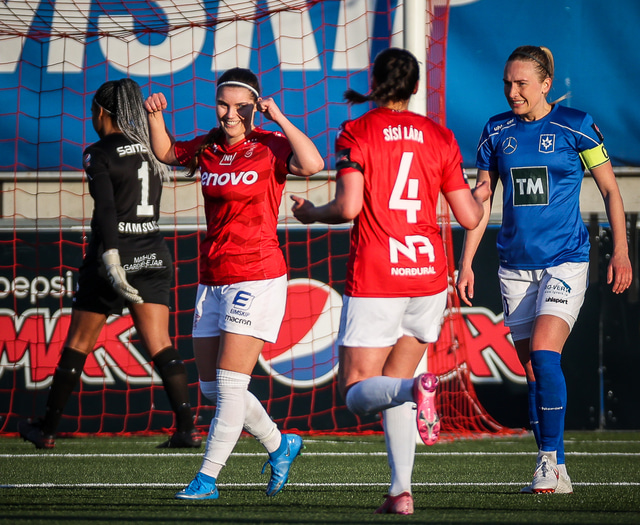 Valur vann 2 - 1 heimasigur á Stjörnunni í fyrsta leik sínum í Pepsi Max-deild kvenna í gærkvöldi. Hér að neðan er myndaveisla úr leiknum.