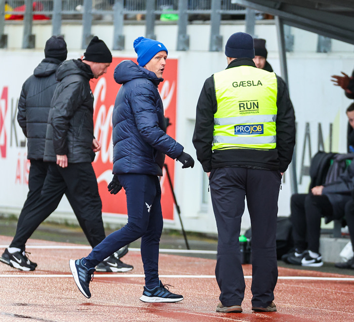 Arnar Grétarsson, þjálfari Vals, brjálaðist á hliðarlínunni og fékk líka að líta rauða spjaldi frá Erlendi Eiríkssyni, dómara leiksins.