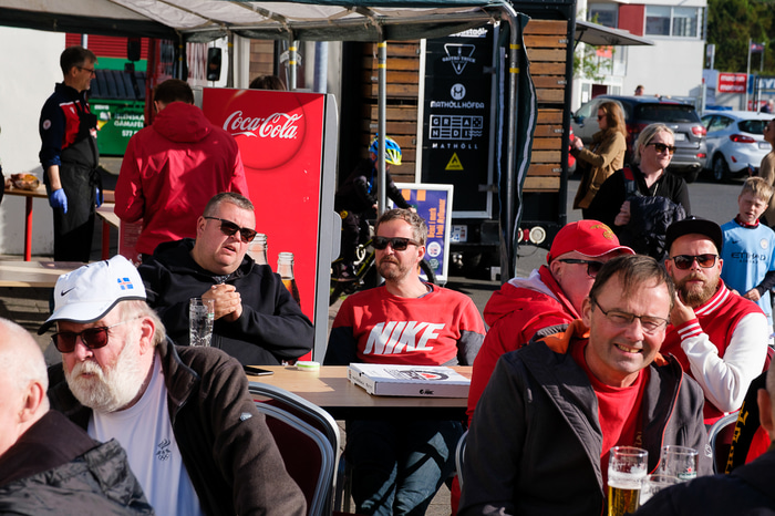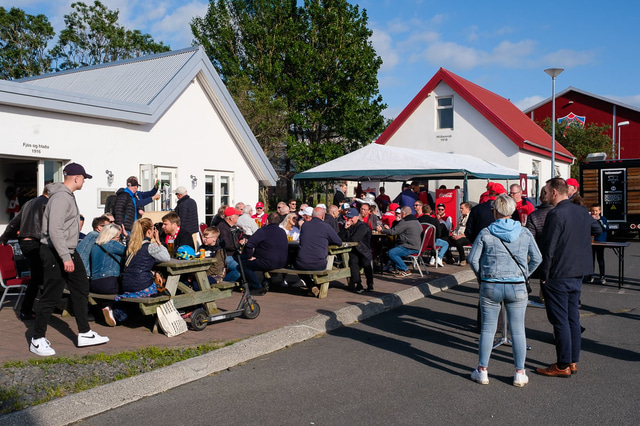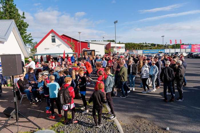 Það ríkti sannkölluð sumargleði á Origo vellinum þegar Valur mætti ÍA í rjómablíðu. Að vanda sáu Fálkarnir um grillið, boðið var upp á leiki fyrir krakkana og hituðu strákarnir í ClubDub upp mannskapinn fyrir leik.