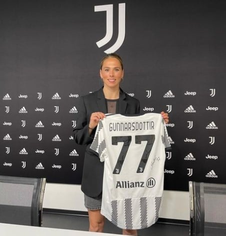Sara Björk Gunnarsdóttir, fyrirliði landsliðsins, gekk nýverið í raðir ítalska stórliðsins Juventus. Hún skrifaði undir tveggja ára samning við ítalska stórliðið og verður númer 77.