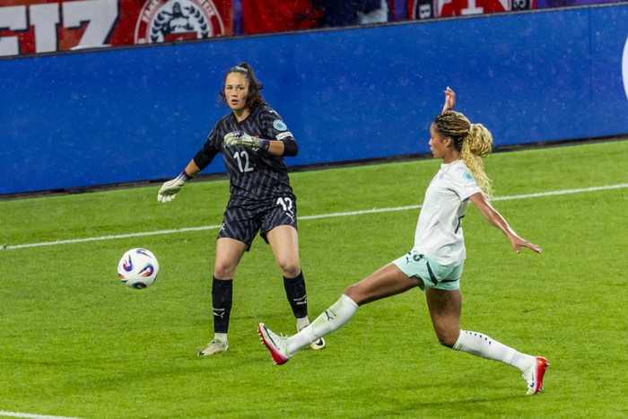 Gerði sig seka um klaufaleg mistök í markinu sem Sviss skorar. Hafði verið góð fram að því. Þetta voru dýrkeypt mistök.