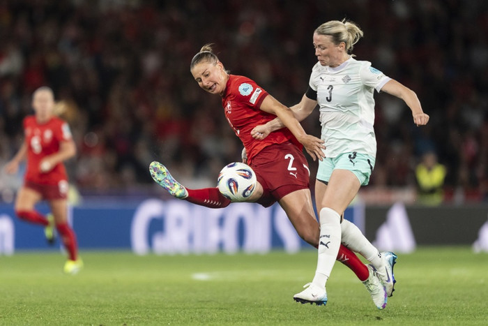 Var flott lengst af en missti manninn inn fyrir sig í fyrra markinu sem Sviss skorar.