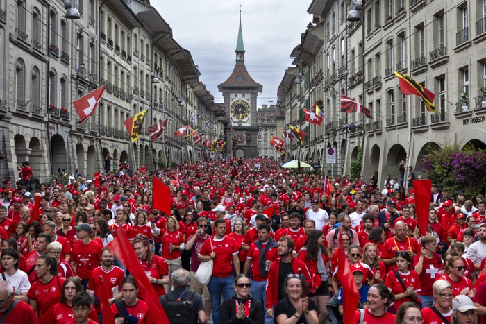 Fyrir leik var sett Evrópumet því um 14 þúsund manns tóku þátt í stuðningsmannagöngu frá miðborg Bern að leikvellinum, Stadium Wankdorf.