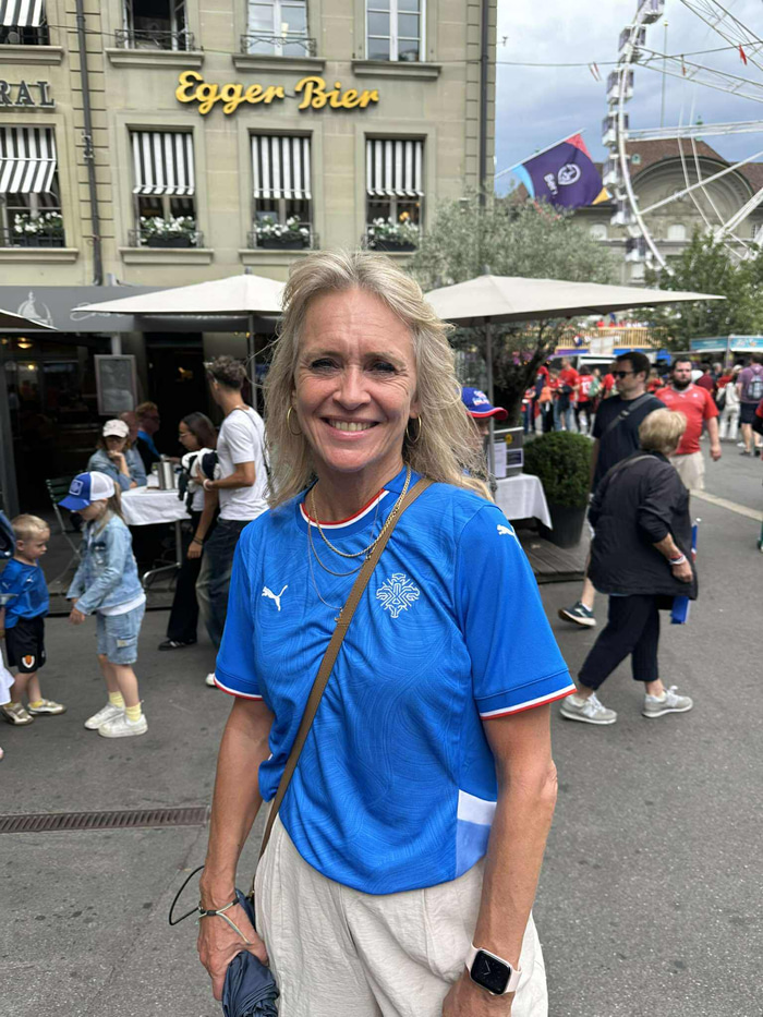 Hún er mætt til Sviss að styðja stelpurnar okkar á EM. Í kvöld er leikur númer tvö gegn heimakonum í Sviss og er mikilvægt að ná í góð úrslit þar til að eiga möguleika á því að fara áfram.