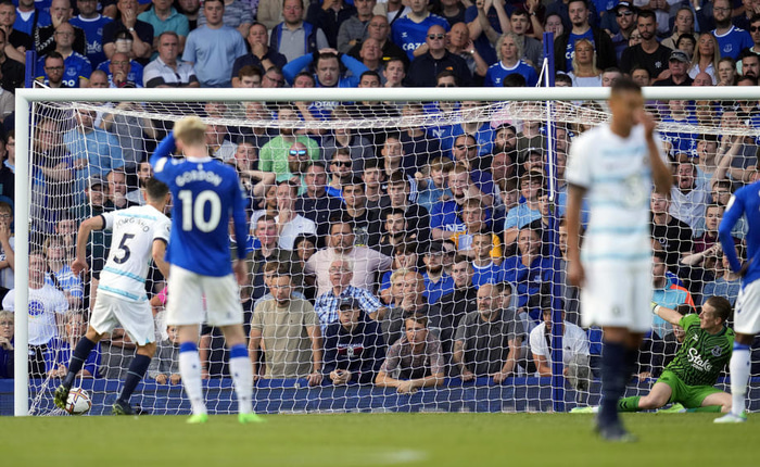 Chelsea er komið með þrjú stig eftir fyrstu umferðina í ensku úrvalsdeildinni eftir að hafa unnið Everton, 1-0, á Goodison Park í dag.