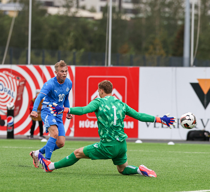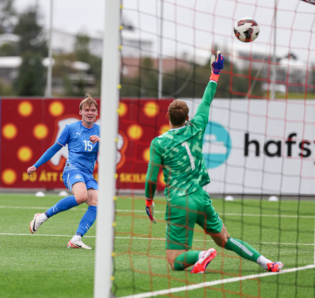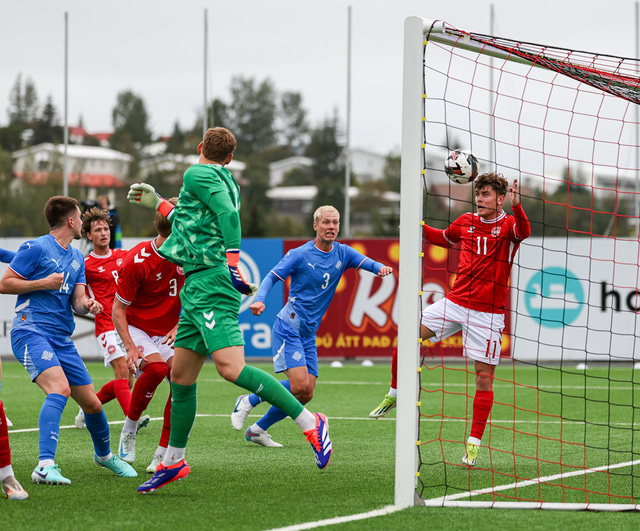 Snemma í seinni hálfleik jafnaði Mathias Kvistgaarden fyrir Danmörku á nýjan leik. Spennan var mikil en á 73. mínútu fékk Ísland vítaspyrnu þegar Hilmir Rafn Mikaelsson gerði virkilega vel. Vítaspyrna var dæmd og á sama tíma fékk Sebastian Otoa að líta rauða spjaldið.
