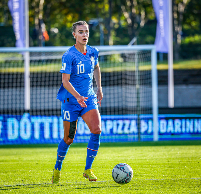 Hún bendir á að Birkir Bjarnason hafi fengið sína treyju í september í fyrra og Aron í dag, en hún og Glódís hafi enga treyju fengið þó ekki hafi vantað verkefni hjá kvennalandsliðinu upp á síðkastið.