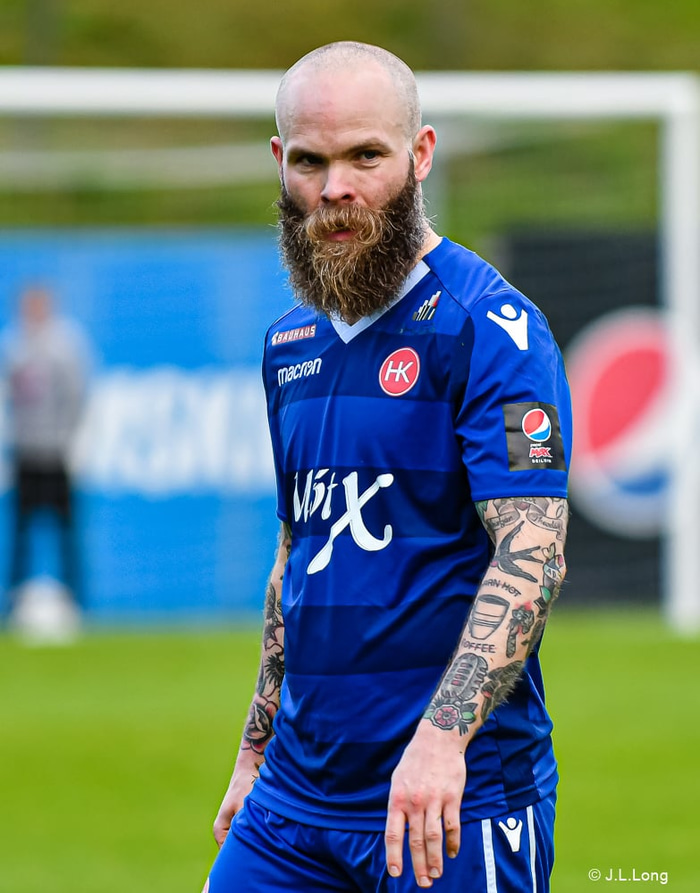 „Ég ræddi það við Börk og það var alveg á hreinu að ég var ekki að falast eftir einhverju fyrirliðabandi þegar ég kom. Hann vildi að ég tæki það og ég svaraði honum nei fyrst, sagði honum að hann ætti bara að halda því. En hann vildi meina að það væri betra fyrir hópinn og á endanum þá varð það þannig að ég fékk bandið frá honum. Það var ekki þannig að ég væri ýta á eftir því þótt mér finnst hann láta það koma þannig út í þessum hlaðvarpsþætti."