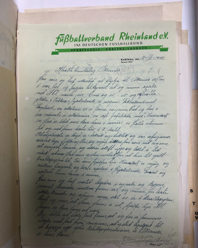 Þegar Ríkharður hafði verið tæpan mánuð í Þýskalandi settist hann niður og skrifaði bréf til stjórnar ÍA. „Þar sem ég hef ákveðið að flytja til Akraness aftur í vor, hef ég þegar tilkynnt að ég muni spila með Í.A. næsta ár,“ svo hófst bréf Ríkharðs áður en hann útskýrði fyrir stjórninni hvað hann væri að fást við í Þýskalandi. „Aðaláhersla er lögð á „teknik“ og „taktik“ og eru æfingarnar sérstaklega fjölbreyttar og mjög ólíkar því sem við eigum að venjast heima, og aldrei skift upp og leikið á tvö mörk, aðeins það sem getur miðað að því að búa til gott knattspyrnulið [...] Þar sem ég hef notið töluverðrar reynslu og keppni, ásamt kennslu undan farin ár, og núna þá bestu skólakennslu æfinga sem völ er á í knattspyrnu, leyfi ég mér, að fara fram á að, þjálfa hjá Í.A. þegar ég kem heim að vori. Ég ætla að taka það fram, að ég fór á þennan skóla með það fyrir augum, að getað hjálpað til að byggja upp góða knattspyrnumenn, á Akranesi, er heim kæmi. Það sem við þurfum að byggja upp heima er það sama og þeir gera hér, áferðarfallega knattspyrnu, með ellefu mönnum sem geta leikið á öllum stöðum vallarins, og alstaðar jafnvel [...] Sem sagt gera knattspyrnuna á Akranesi það góða, að fólki þyki gaman að sjá hana leikna og vilji stuðla að því að hún eflist sem mest,“ ritaði Ríkharður innblásinn frá Þýskalandi.