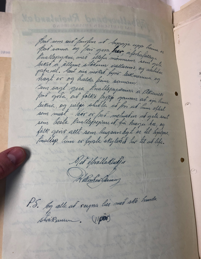 Bréfið er fyrir margt merkilegt, og líta má á það sem sem eins konar upphaf gullaldarinnar á Akranesi. Ríkharður var fullur eldmóðs fyrir framtíð knattspyrnunnar á Akranesi og ætlaði sér að gera liðið að því besta á Íslandi. „Það er ekki stærð bæjarins sem ræður. Besta knattspyrnulið landsins getur alveg eins komið frá litlum bæ,“ sagði Óðinn S. Geirdal síðar að Ríkharður hafi ritað til sín frá Þýskalandi. Hafa skal í huga að Ríkharður var aðeins 21 árs gamall þegar hann ritar bréfið til ÍA.