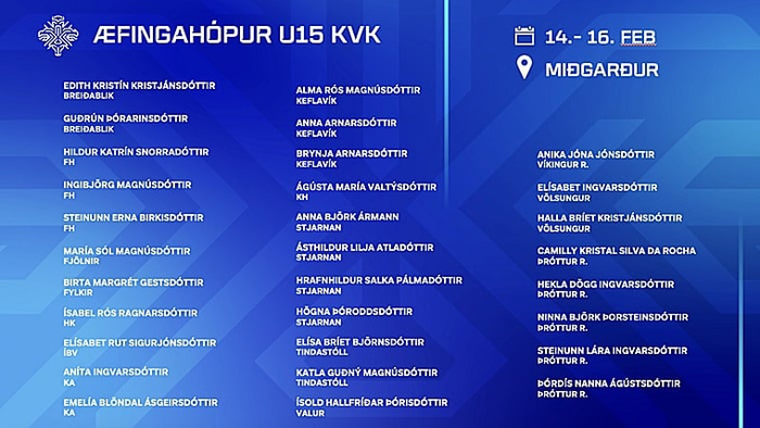 Magnús Örn Helgaon hefur valið æfingahóp U15 ára landsliðs kvenna.