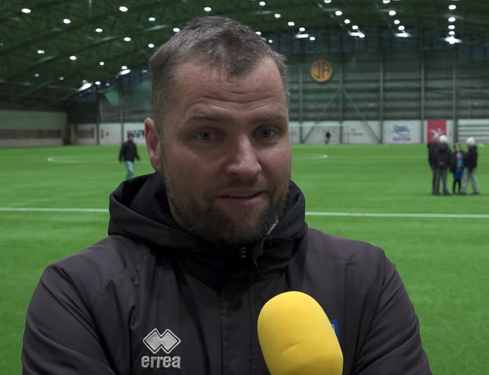 „Það voru tveir sem áttu að vera í hóp í dag sem komust ekki, sjúkraþjálfarinn ekki á svæðinu. Mér finnst það svolítið kærulaust hjá KSÍ að láta leikinn fara fram. Úr því að við náðum að koma liði inná og spila þá bara áfram gakk," segir Guðjón.