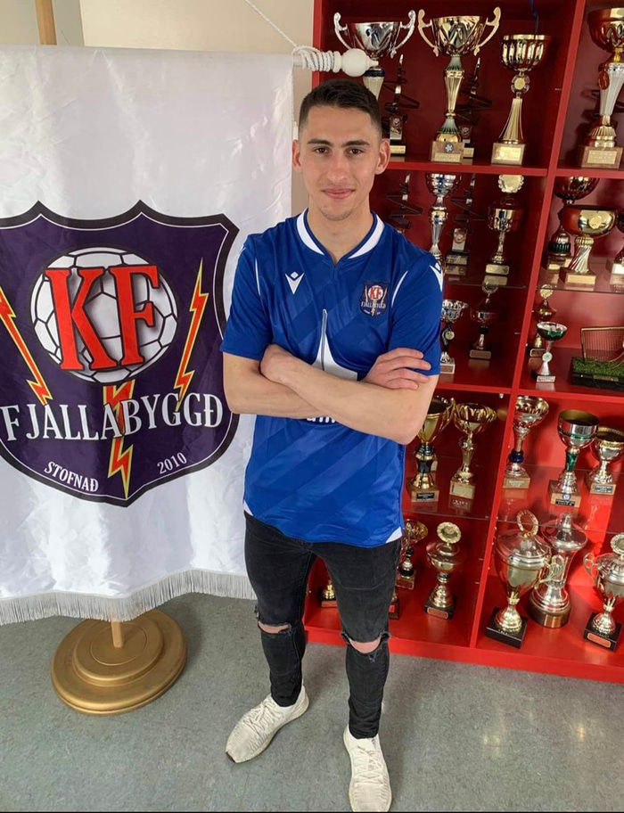 Hann skoraði tvö mörk í úrslitaleik Kjarnafæðismótsins í síðasta mánuði. Hann lék svo með KF gegn Dalvík/Reyni í bikarnum og er klár í slaginn með liðinu í sumar.