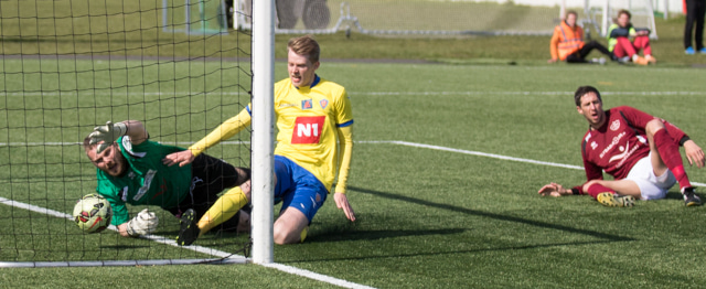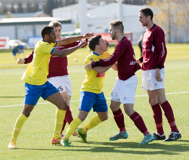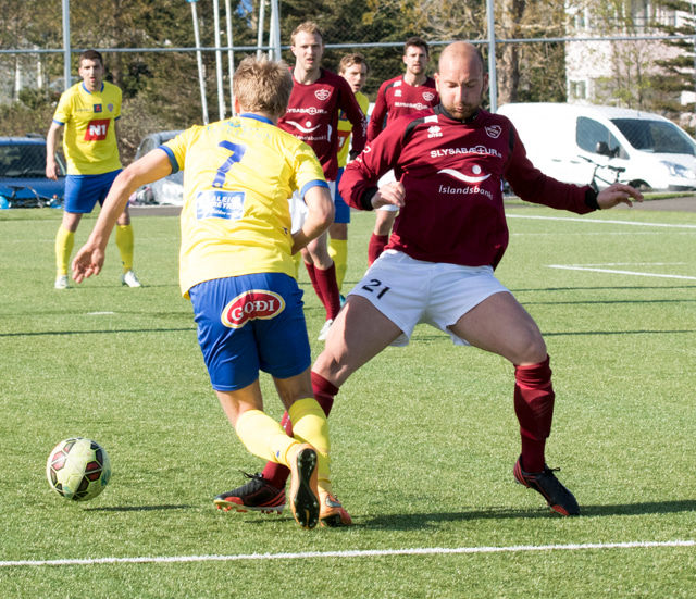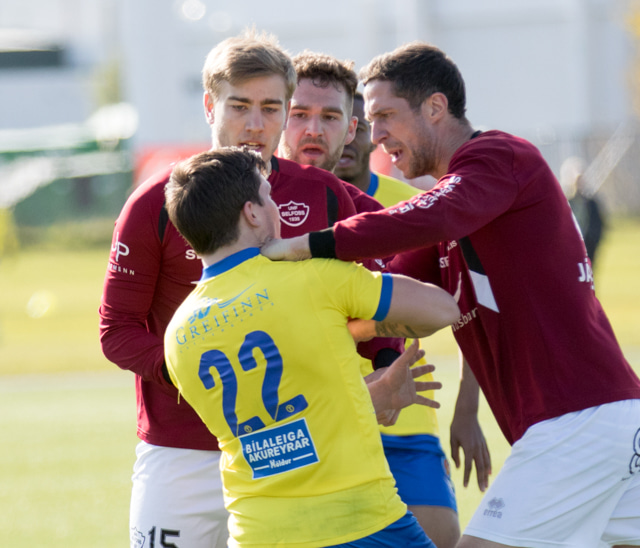 Það var hart barist á KA-velli í gær þegar KA mætti Selfossi í fimmtu umferð 1.deildar karla.