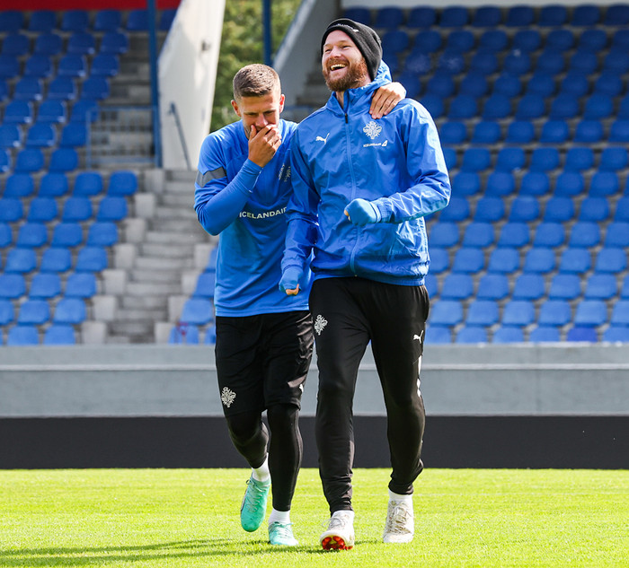 Aron er kominn til móts við liðið eftir ansi gott tímabil með Al Arabi í Katar. „Það er gott að vera kominn heim, loksins, í landsliðsverkefni á Laugardalsvelli."