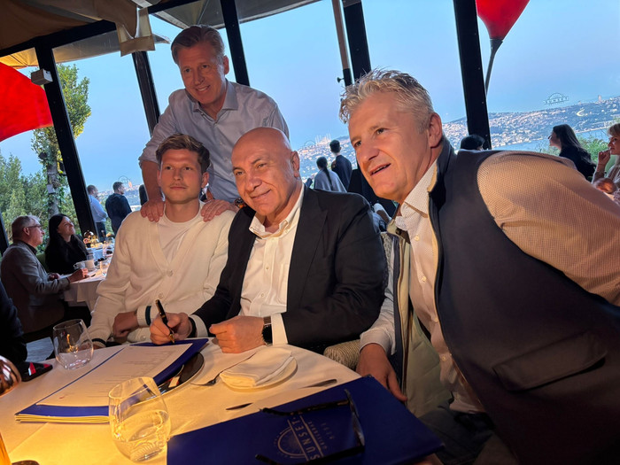 Kvöldverður og undirskrift í Istanbúl: Logi Tómasson með umboðsmanni sínum, Ólafi Garðarssyni, forseta Samsunspor og Davor Suker.