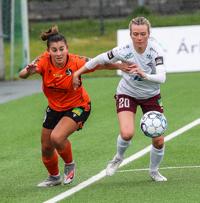 Agla María Albertsdóttir átti yfir tíu tilraunir að marki Þróttar í gærkvöldi. Hún reyndi mikið sjálf og markið lét bíða eftir sér. Það kom undir lokin þegar Agla María jafnaði með óverjandi skoti upp í samskeytin fjær. Linda Líf Boama var virkilega öflug í leiknum, reyndist varnarmönnum Blika erfið og skoraði annað af mörkum Þróttar í leiknum. Hún átti þá lykilsendingu í seinna markinu.