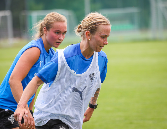 Fyrsta æfing liðsins var í dag og fyrir æfingu ræddu fjórir leikmenn liðsins við fjölmiðla. Gunnhildur Yrsa Jónsdóttir var ein þeirra.