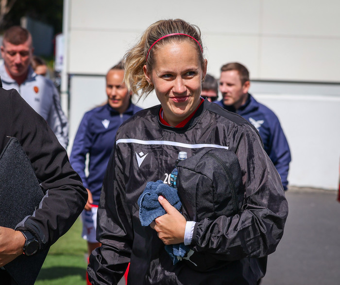 Hún var síðast á mála hjá Val þar sem hún var varamarkvörður áður en hanskarnir fóru upp á hillu.