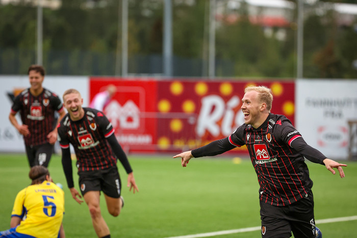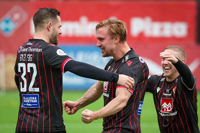 Pálmi Rafn átti flottan leik í markinu og tók nokkrar mikilvægar vörslur, og eina svakalega mikilvæga undir lokin er Nicolai Vallys tók þrumuskot, en Pálmi var með allt í teskeið og varði skotið.