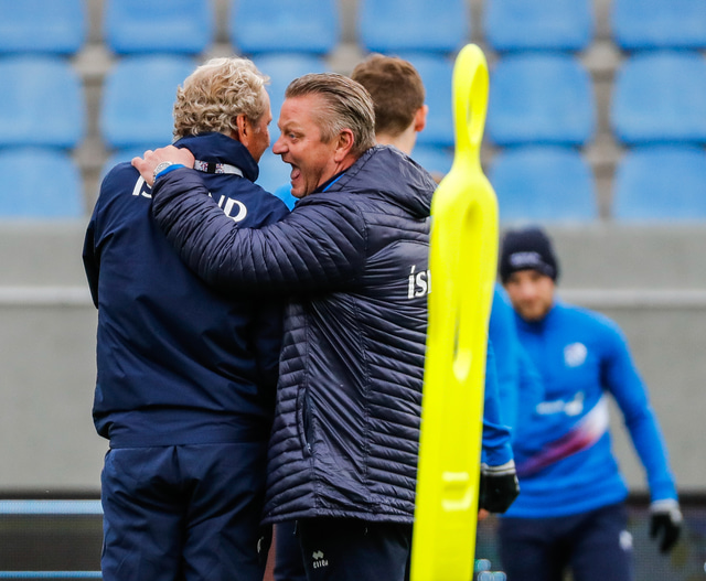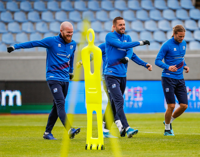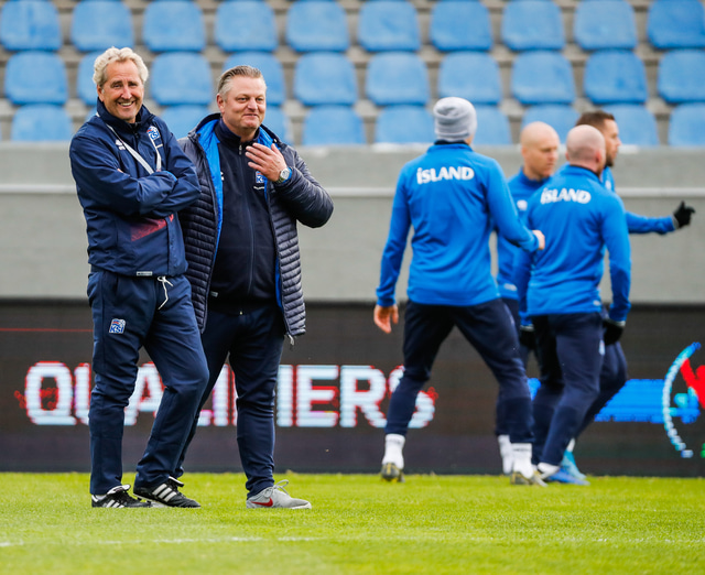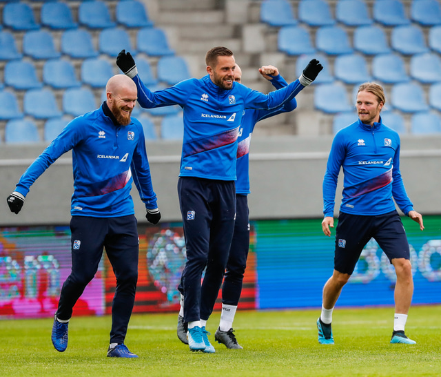 Ísland tók í gær sína lokaæfingu fyrir leikinn gegn Moldóvu á Laugardalsvelli klukkan 16:00 í dag. Hér að neðan er myndaveisla úr Laugardalnum.