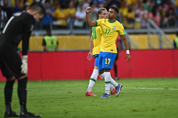 Rodrygo, sem leikur fyrir Real Madrid, var partur af stjörnum prýddu byrjunarliði Brasilíu sem innihélt meðal annars Vinicius Junior, Lucas Paquetá og Bruno Guimaraes.