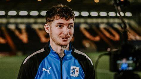 Rory Feely er leikmaður Barrow en hann var á bekknum þegar markmaðurinn Paul Farman fékk beint rautt spjald í fyrri hálfleik. Barrow var ekki með neinn varamarkmann á bekknum og þá voru góð ráð dýr.