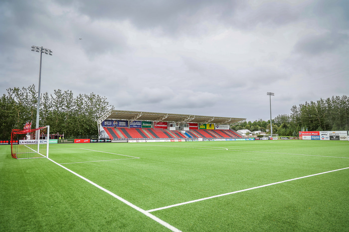 Kópavogsvöllur, heimavöllur Breiðabliks er álitlegasti kosturinn á Íslandi að mati UEFA. Það mun kosta verulegar fjárhæðir að gera hann kláran í leikina.