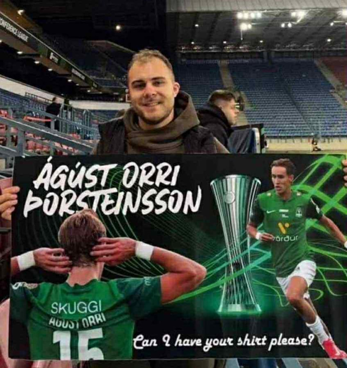 Szymon Binczyk var mættur á völlinn eftir átta tíma lestarferð. Hann er mikill fótboltaaðdáandi og treyjusafnari, hann var mættur til þess að sjá leikinn og fá treyju Ágústs Orra Þorsteinssonar eftir leikinn. Hann mætti með skilti af Ágústi Orra og á því stóð hvort hann gæti fengið treyju hans.