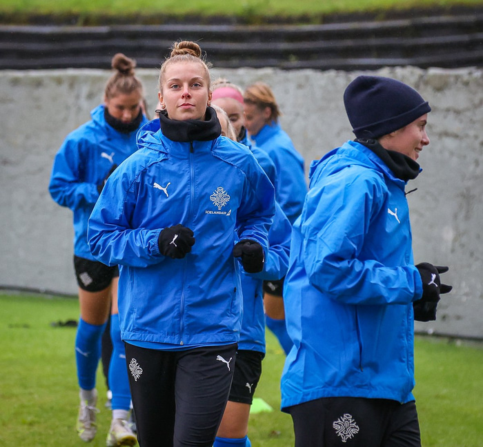 „Í raun ekki þar sem ég kom inn í hópinn þar sem við vorum byrjaðar að undirbúa okkur fyrir leikinn. Þannig æfingarnar sem ég fékk var bara taktík og maður átti ekkert þannig að sýna sig eða svoleiðis, en jú maður sér hvernig tempóið og standardinn er," sagði hún í lokin.