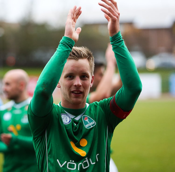 Finnur Orri Margeirsson fyrirliði Blika skoraði tvívegis í leiknum en hann hefur á ferli sínum leikið 139 leiki í deild og bikar án þess að ná að skora.
