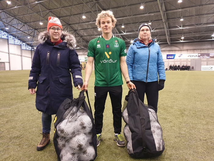 Höskuldur Gunnlaugsson, fyrirliði Breiðabliks, færði þeim Jónu Petru Magnúsdóttur frá Leikni og yngri flokkum Fjarðabyggðar (YFF) og Guðnýju Margréti Bjarnadóttur frá YFF 25 bolta sem nýtast eiga í barnastarfi hjá YFF.
