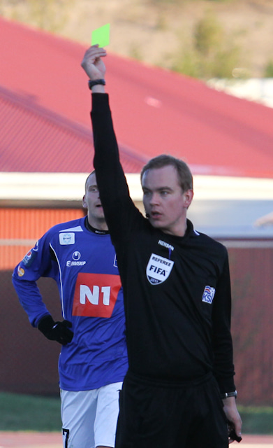 Í leik Fram og ÍBV kom upp atvik sem svipaði að einhverju leiti til atviks í leik KR og FH á síðustu leiktíð. Dómari leiksins dæmdi óbeina aukaspyrnu þar sem hann taldi að varnarmaður Fram hefði verið að senda til baka á markmanninn sinn. Það er ekki auðvelt að átta sig á því hvort um sendingu sé að ræða eða hvort hann einfaldlega hitti boltann svona illa. Dómarinn mat það hins vegar greinilega þannig að varnarmaðurinn hafi leikið knettinum vísvitandi til baka og því hafi markmanninum ekki verið heimilt að taka hann upp með höndum. Í þessu samhengi er rétt að benda á það að dómarinn hafði annað sjónarhorn á þessa atburðarás en það sem okkur var sýnt í sjónvarpi. Getur verið að frá honum séð hafi þetta litið út sem sending?