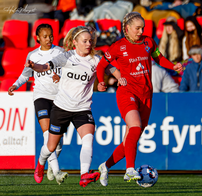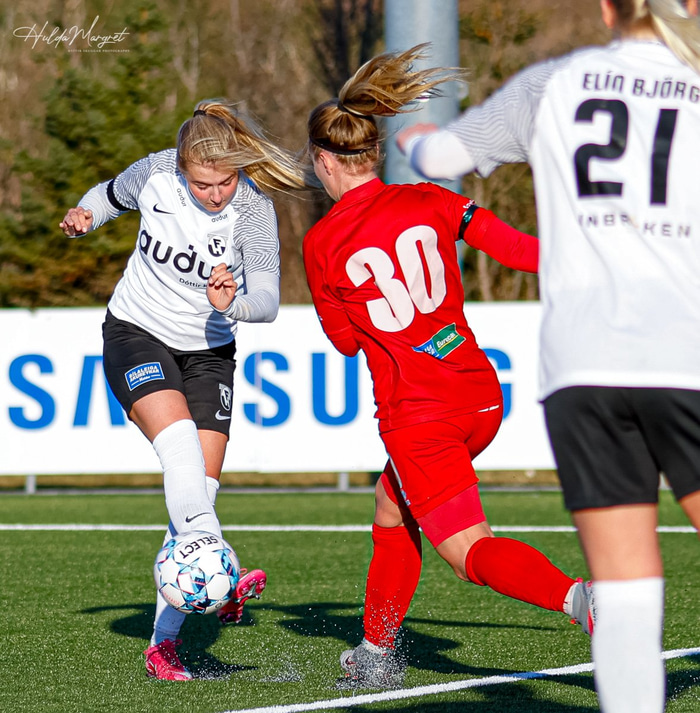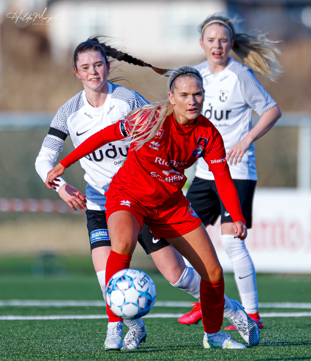 Haukar unnu 2 - 1 sigur á FH í fyrstu umferð Lengjudeildar kvenna í fyrrakvöl. Hulda Margrét var á vellinum og tók þessar myndir.