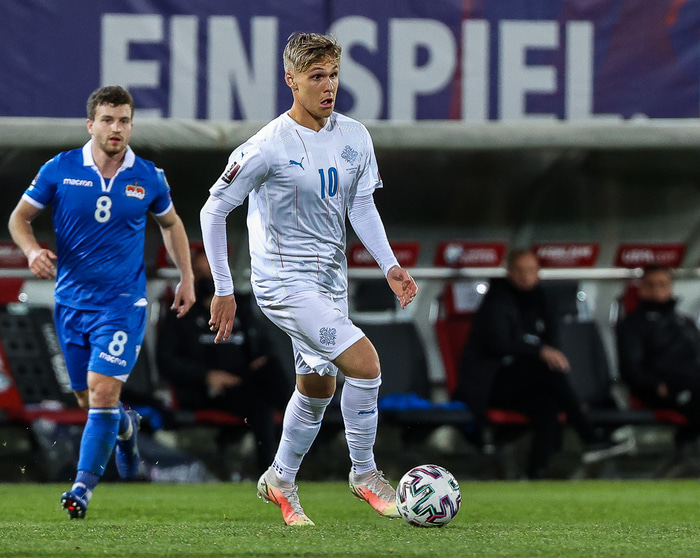 Arnór kom inn á þegar fimm mínútur voru eftir af leiknum í dag.