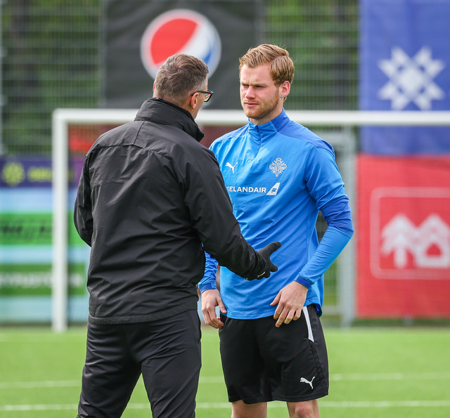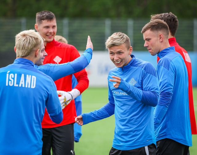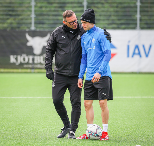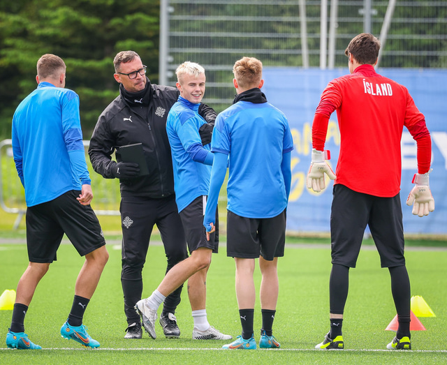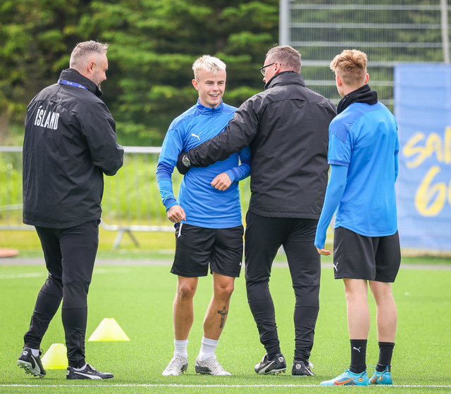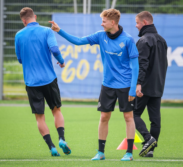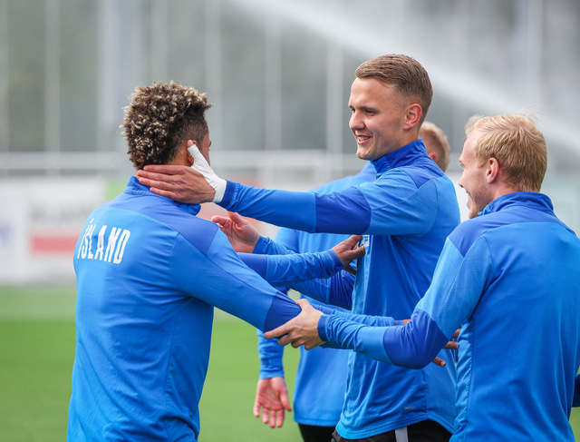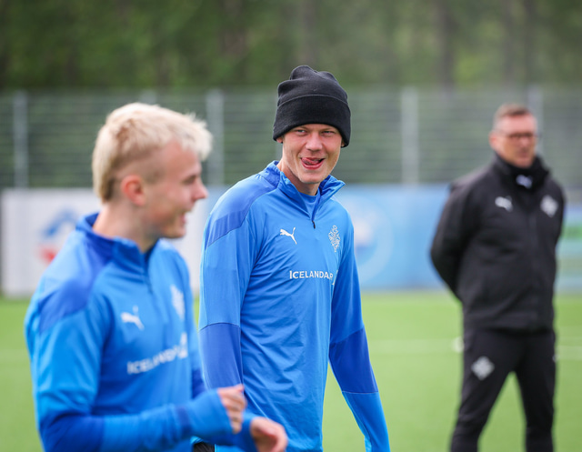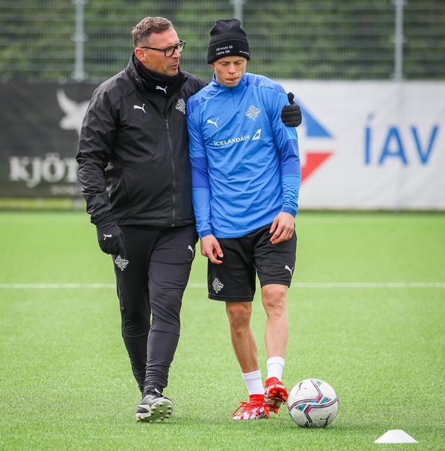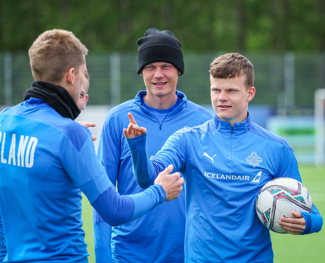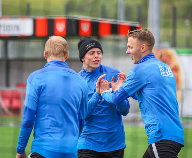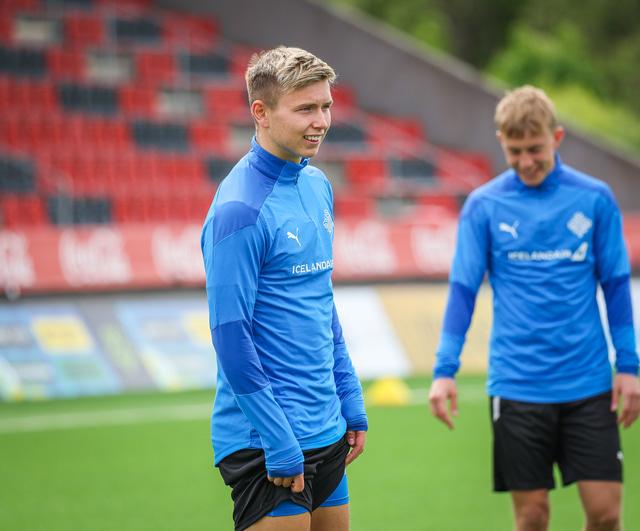 U21 landslið Íslands æfði á Víkingsvelli í gær en liðið mætir Hvíta Rússlandi í undankeppni EM í kvöld. Hér að neðan er myndaveisla af æfingunni.
