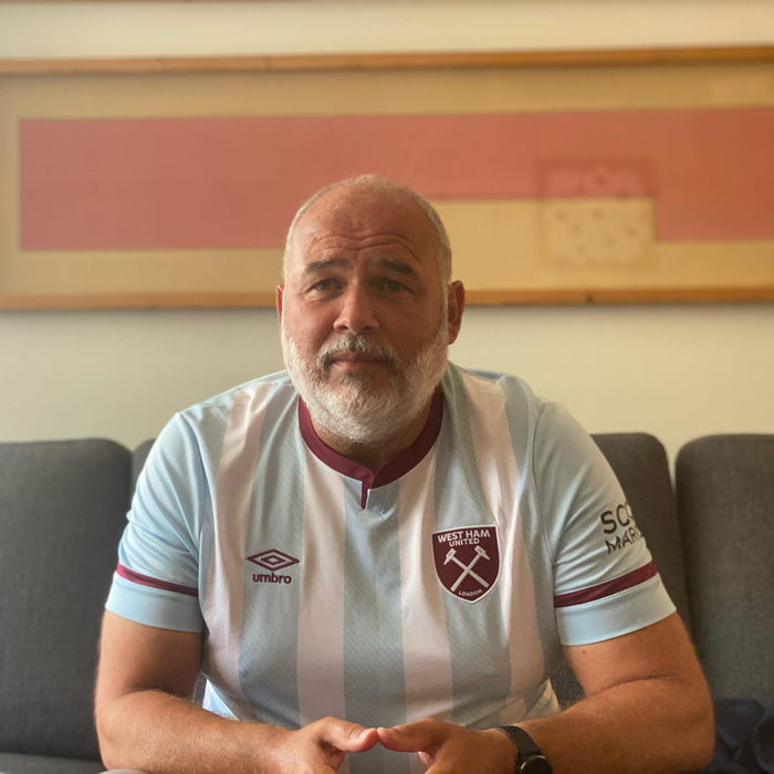 Ég byrjaði að halda með West Ham af því að... út af einskærri tilviljun. Vinur minn gaf mér stórt og mikið West Ham merki úr plasti þegar ég var átta ára. Þá varð ekki aftur snúið og ég hef staðið með mínu liði gegnum súrt og sætt í rúm 50 ár.