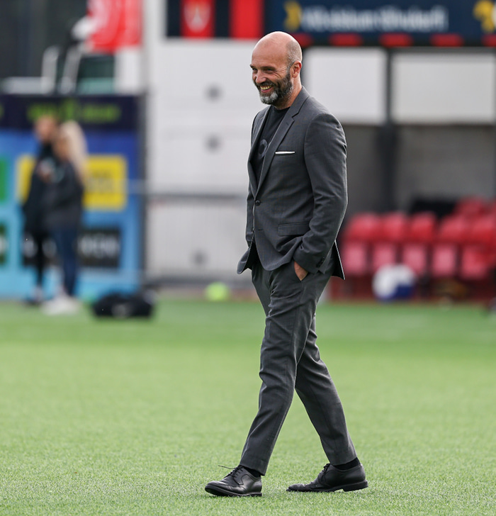 „Í seinni hálfleik var þetta erfitt. Maður fann að strákarnir vildu þetta mikið, þeir vildu mikið skora og stundum vildu þeir skora tvö mörk í hverri einustu sókn. Við fengum færin. Mögulega var langt á milli færa hjá okkur en við náðum að halda þrýstingnum á þá. Ég missti töluna á fjölda fyrirgjafa sem við áttum í leiknum. Það sýnir kannski að það vantaði smá Niko (Nikolaj Hansen) og nærveru í teignum til að nýta þessar góðu fyrirgjafir."