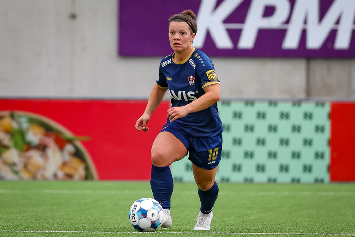 Bæði lið áttu skalla í slá á upphafskaflanum, áður en hin hæfileikaríka Katie Cousins var heppin að vera rétt kona á réttum stað til að taka forystuna á 24. mínútu. Fyrirgjöf sem breytti um stefnu af varnarmanni datt beint fyrir fætur Katie sem skoraði úr þægilegu færi.