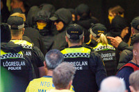 Það voru um 200 stuðningsmenn Bröndby mættir til Íslands vegna leiksins en 30 manna hópur af boltabullum var til vandræða. Einn af þeim er sagður hafa kýlt lögreglumann í andlitið og ekki ólíklegt að það hafi verið sá aðili sem hafi verið handtekinn.