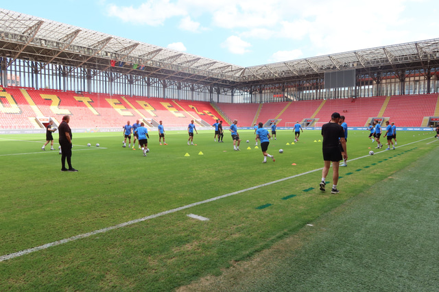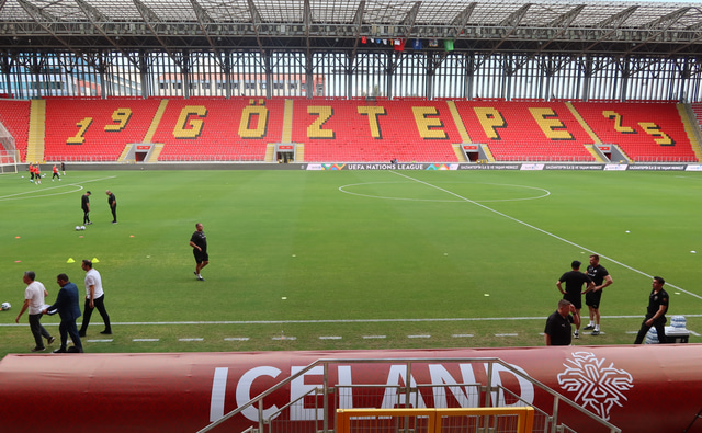 Á morgun verður spilað á Gürsel Aksel Stadium, heimavelli Göztepe. Völlurinn tekur tæplega 20 þúsund manns í sæti og má búast við því að það verði uppselt. Fólk stóð í röðum í dag að kaupa miða á leikinn.