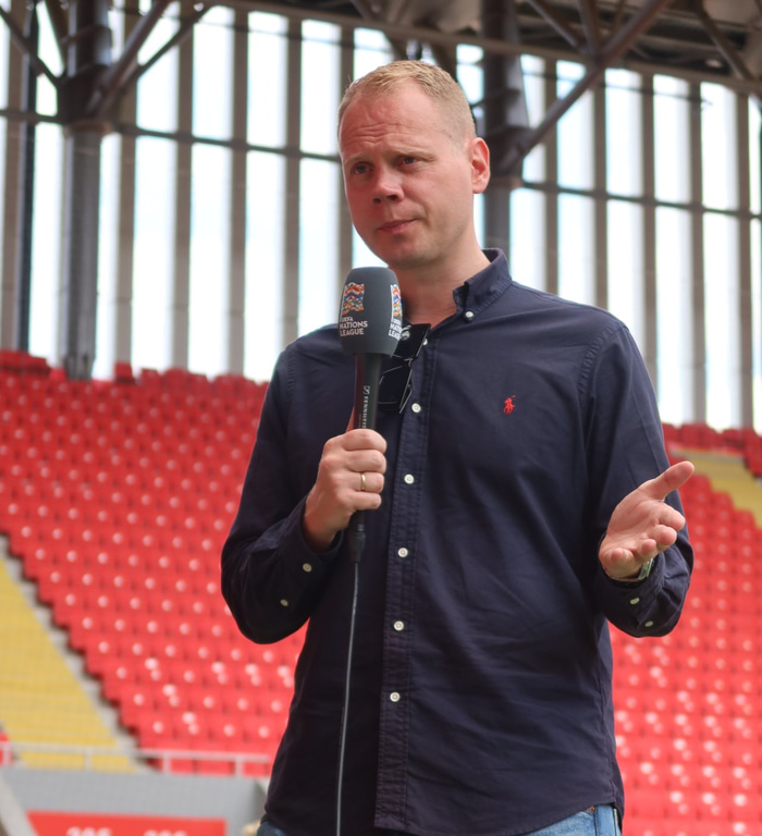 „Ég er nokkuð bjartsýnn fyrir íslenska landsliðinu. Þeir unnu Englendingana, en voru reyndar hræðilegir á móti Hollandi. Það var stutt á milli leikja þá og núna líka. Ég ætla að spá 1-1 jafntefli. Við ættum að vera mjög sátt með það. Við höldum þá vegferð okkar áfram að því að vinna þennan riðil. Það væru frábær úrslit."