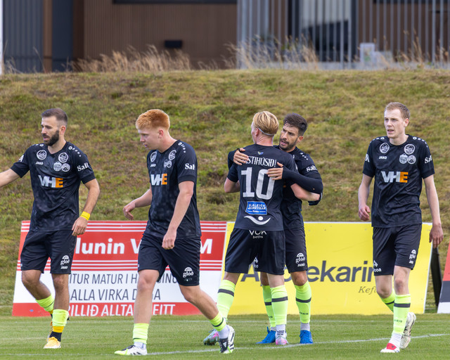 Þróttur Vogum er í toppsæti 2. deildar en liðið vann 2-1 sigur á Hetti/?Hugin á heimavelli um helgina. Höttur/?Huginn er fallinn fyrir vikið. Marti Prera kom Hetti/?Hugin en þeir Guðni Sigþórsson og Auðun Gauti Auðunsson svöruðu fyrir Þrótt.