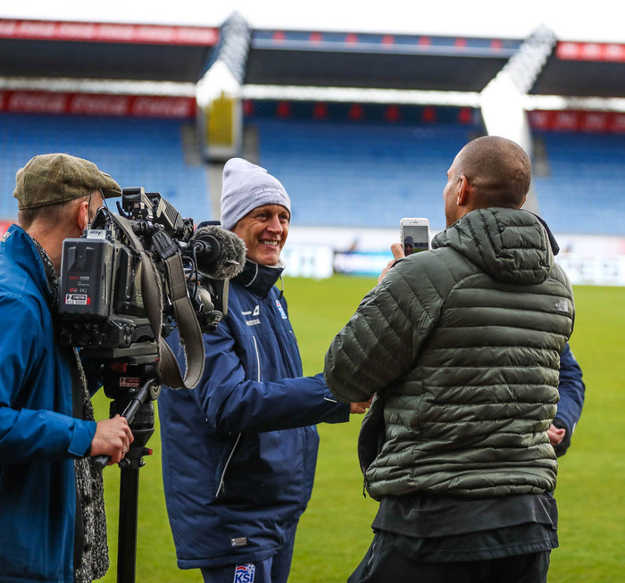 „Ég var í Noregi í síðustu viku að taka upp. Þá talaði ég við Lars Bohinen fyrrverandi liðsfélaga minn sem spilaði á Heimsmeistaramótinu 1994 þegar Noregur var í 2. sæti á heimslistanum. Nú eru þeir i 85. sæti, þeir gripu ekki augnablikið en ég vona að Ísland geri það."