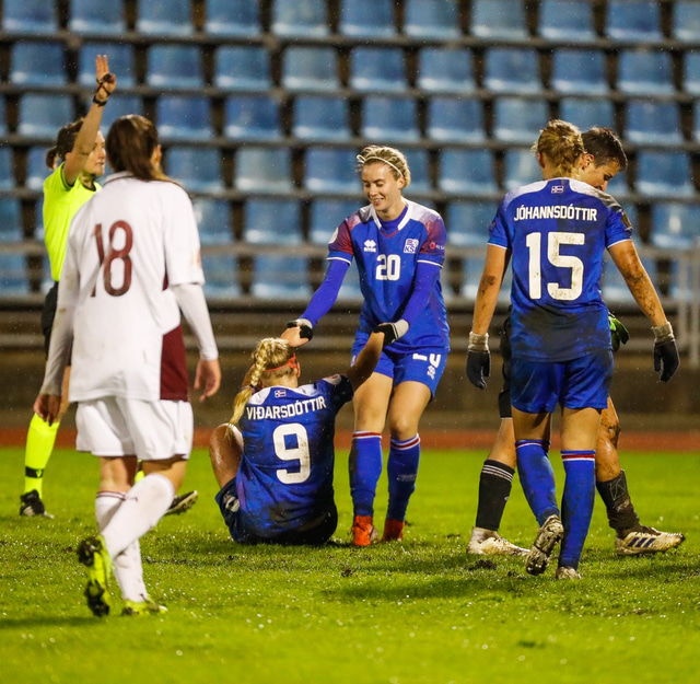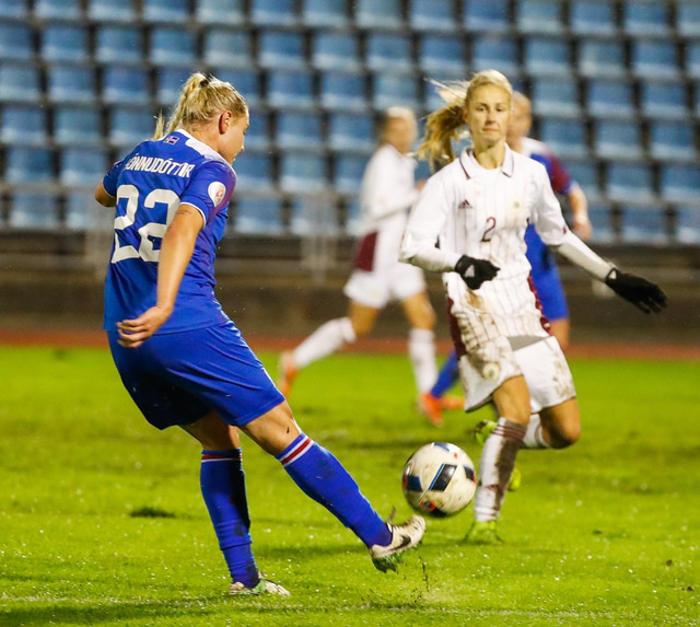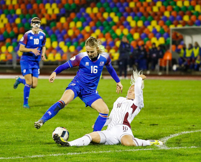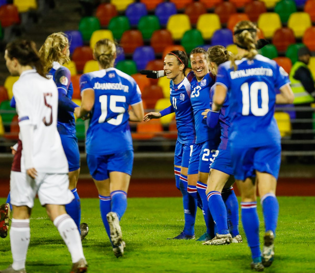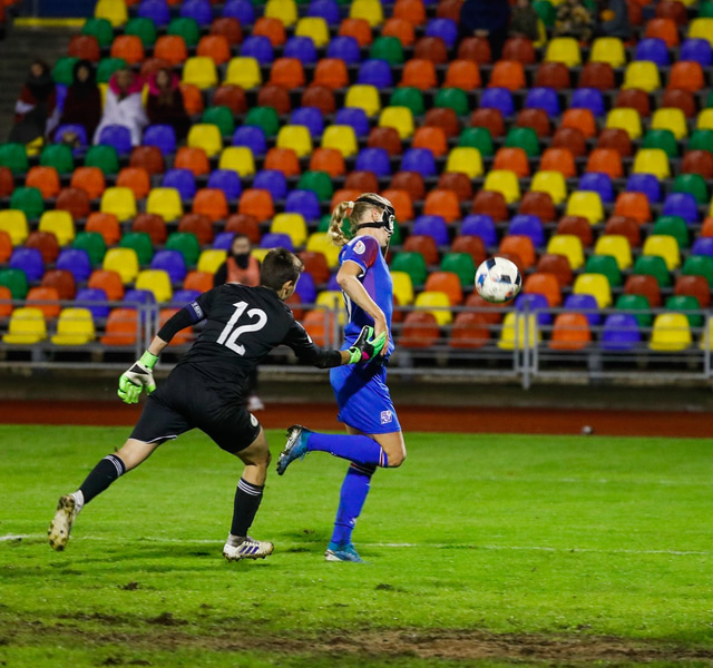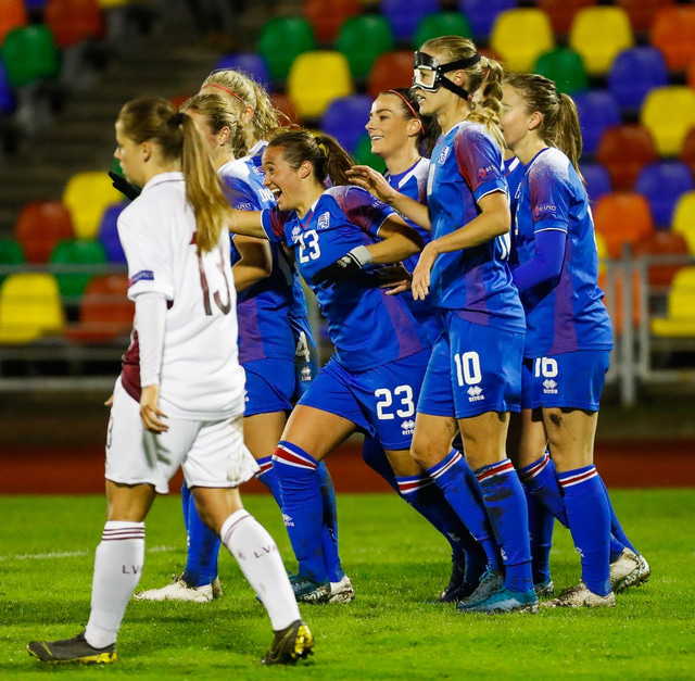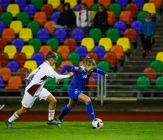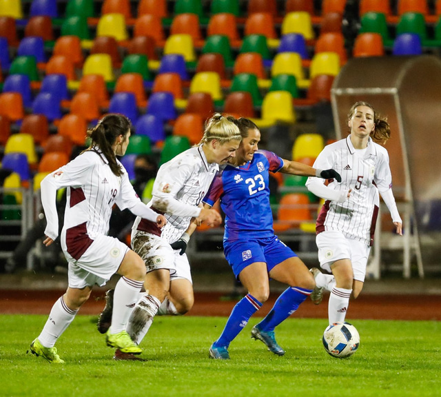 Kvennalandsliðið vann 0 - 6 sigur á Lettlandi í undankeppni EM 2021 í kvöld en leikið var í Liepaja í Lettlandi. Fótbolti.net var á staðnum og hér að neðan er fjöldi mynda úr leiknum.
