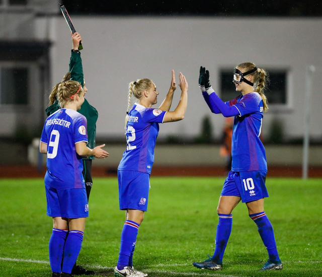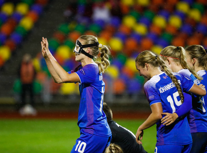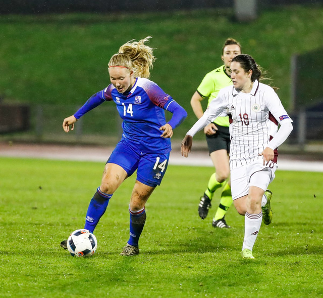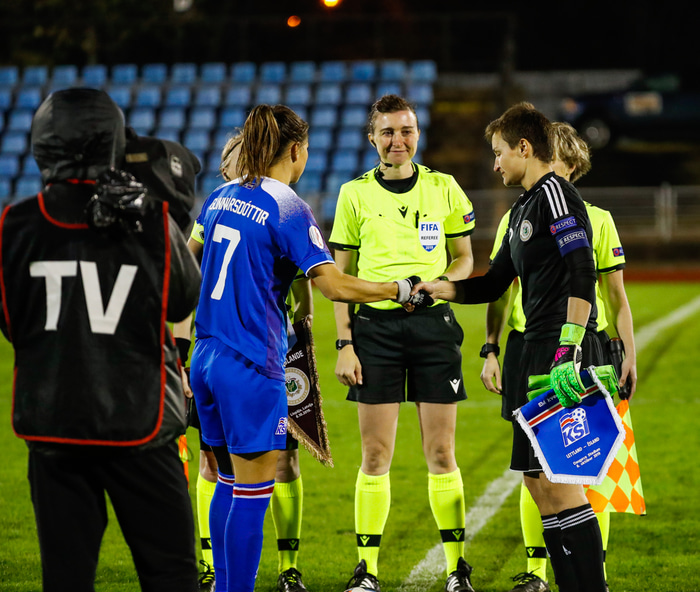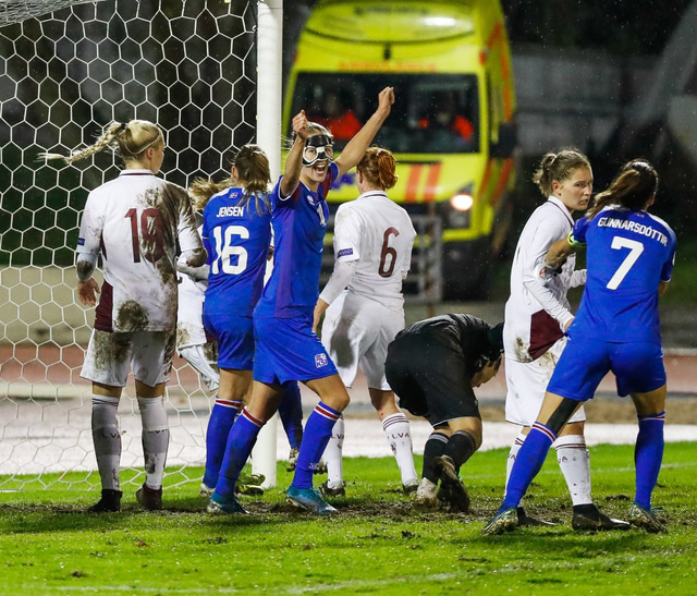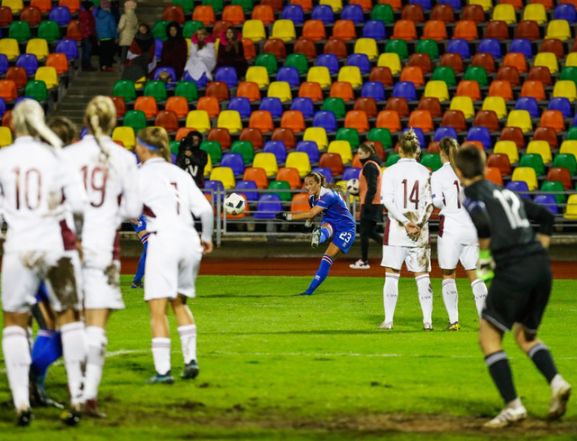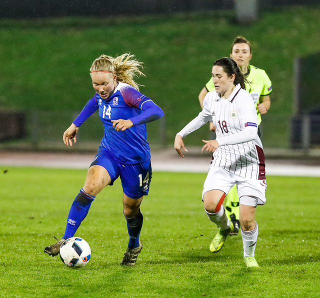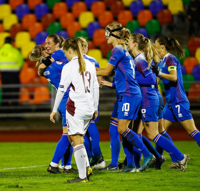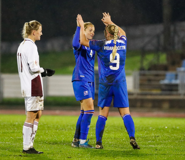 Kvennalandsliðið vann 0 - 6 sigur á Lettlandi í undankeppni EM 2021 í kvöld en leikið var í Liepaja í Lettlandi. Fótbolti.net var á staðnum og hér að neðan er fjöldi mynda úr leiknum.